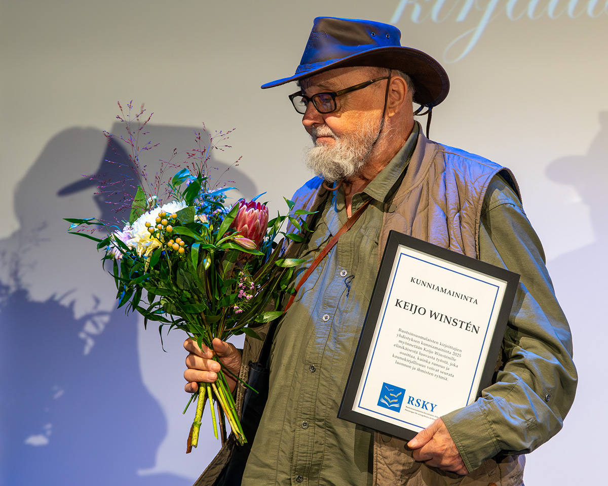 Ruotsinsuomalaisten kirjoittajien yhdistyksen kunniamaininta myönnetään Keijo Winsténille elinikäisestä luovasta työstä, joka osoittaa, kuinka runous ja kaunokirjallisuus voivat seurata luonnon ja ihmisten rytmiä.